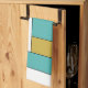 Denna fantastiska moderna kökshandduk i mitten av århundradet har rektangulära block av färg i vattenblått, guld, orange, vitt och svart. Lägg till en roligt i köket!