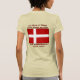 Kortärmad kvinnor har t-shirt med flagga i Danmark och läser. BLODET AV VIKINGER FLÖR TROTS MIN VEINS OCH IBLAND DERAS ÖL. Utformningsskor på fram- och baksidan. Roligt och lustig t-shirt. Underbar gåva till henne.