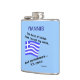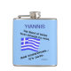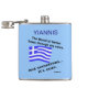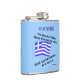 Personlig flaska visar en vågig grekisk flagga och lyder, "Blodet från Hellas flödar genom mina ådror. Och ibland...dess ouzo." Roligt för ett skratt på Oxi-dagen eller när som helst. Bakgrundsfärgen är blå. Den kan ändras till vad du vill. Fantastiskt present till papou eller pappa på fars dag.