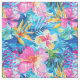 Ett sömlöst mönster med hawaiiska blommor som hibiscus, paradisfåglar och orkidéer i ett sjudande vattenfärg stil. Konstruktionen fångar den tropiska florans lush- och exotiska skönhet med rik, levande färg och konstnärlig vätsketillförsel