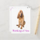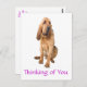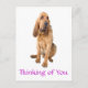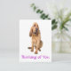 Man tittar på ansikte i en Bloodhound-marionett hund och man måste le. Med det här vykortet för roligt finns en brun och svart blodsund som vilar på en skarp vit bakgrund. Han är redo att hjälpa dig att skicka "Thinking of You" hälsning till familj och vänner. vykort är det ekonomiska alternativet till ett dyrt gratulationskort när du vill skicka en snabbnot för att informera någon om att de är speciella.