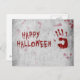Skrämmande hemsk Halloween-illustration med ett blodigt handavtryck och blodstänk på en smutsig bakgrund.
