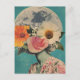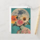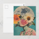 Det här fantastiska vykortet har ett figur med ansikte som vackert döljs av blommor som blommar, mot bakgrunden av ett lysande fullt måne. Att blanda surrealism med vintage och bohos estetik, symboliserar mysterium, omvandling och det djupa sambandet mellan naturen och kosmos. Ett val av perfekt för älskare av konstnärliga, konstnärliga och blommigt teman.