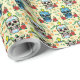 Gratulera till Dia de los Muertos-andan med vårt sjudande Halloween-pappra med ett sömlöst, festligt mönster. Dekorerade sockerhaltiga döskallar i levande blått och färglöst design växlas med lush röd ros och ställs in mot gulten för varm blek. Den delikatligen sprinklade gula blommor och gröntens löv tillför en viskartad beröring och skapar den pappra perfekten för Halloween och Día de los Muertos firande. Ljusstark, glatt och unik tema - perfekt för presenter med en spiralformad fläkt.