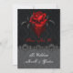 Den mottagningsinbjudan har en slående gotisk och romantisk estetik. En framträdande röd ros tar centrum i toppen och droppar en levande röd vätska på en hjärtformad bakgrund. Den svarta bakgrunden är prydd med ett invecklat damaskmönster som förstärker den dramatiska känslan. Under rosen finns en silverliknande spetsdekoration som tillför elegans och delar upp kortet i två sektioner. Den nedre halvan har en grå damaskmönstrad bakgrund med sofistikerade designelement i rött och vitt. Den utstrålar charm och mystik samtidigt som den behåller en känsla av förfining.
