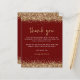 Ett ekonomiskt alternativ i BUDGET på en mindre storlek på 4,5 x 5,6 tum (110 lbs vikt), som är av samma tjocklek som ett vykort (är dock inte lämpligt för använda som vykort). OBSERVERA ATT DET FINNS EN inbjudan per lakan. Blood Red Guld Glitter tjugoförsta Party Tack. Gräns i faux guld glitter ligger överst och grund på vardera sidan på klassisk svart, och Tack är i ett handskript stil i samordnande guld. Anpassa enkelt resten av texten. Du kan också ändra färg och bakgrund genom att anpassa ytterligare alternativ om du vill.