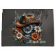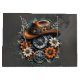 Blodväxlar: Steampunk cowboyen stil. Den här cowboyhatten har en varm, rik brun skugga som avspeglar en western hattes klassiska hårdhet och rustiska charm. Genom formgivningen kombineras det industriella ångestestestet med känsliga, naturliga blommor för att skapa en fascinerande balans mellan mekanik och natur. Ett unikt tillbehör som utstrålar både en anda av äventyr och elegans.