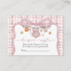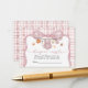 Gör din baby shower extra rolig och minnesvärd med detta söta Diaper Raffle-kort med rosa rutig bakgrund, elegant bow-design och söta hösttema-illustrationer med bland annat en pumpa, barnklänning, mössa och höstlöv. Gästerna uppmanas att ta med en förpackning blöjor i valfri storlek för en chans att vinna ett speciellt pris, vilket gör det till ett perfekt sätt att hjälpa nya föräldrar att fylla på med det viktigaste samtidigt som det tillför spänning till firandet.