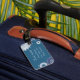 En underbar bagagemärkre, som ska, l5At dig stå ut från folkmassan. Den presenterar en blåttbakgrund med vit och blåa blommor. Du skräddarsy din information i centrera.