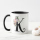 Härlig kaffemugg med original- monogramkonst. Svart brev K, blom- vattenfärgsmyckning (enkelt vid bläck)