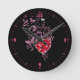 Blom- design för rosa fjäril rund klocka