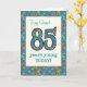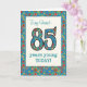 Ett nätt Ålder-närmare detalj födelsedagkort för engammal vän, med numrera 85 och gränsen som fylls med en färgglad retro blommönster på en krickabakgrund. Blommönstret är delen av den Posh & Painterly "Grannytryck" samlingen, från enmålad papper collage av Judy Adamson. Denna design ska passform som allt hälsningkort storleksanpassar.