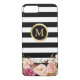 Dekorera din iPhone i stil med denna personifierade "blom- guld- cirklar görade randig" fodral för monogramen det svart vit!