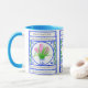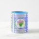 En vitmugg med ett pudrablåtthandtag och kant. Designen är av några hyacint och att illustrera dikt - ', om thouen av förmögenhet berefts, och av thy jordiska godor har lämnat, två loaves, sell en och med dolen, KÖPHYACINT för ATT MATA SOULEN. Se också att matcha hälsningkortet och andra produkter.