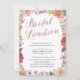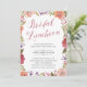 Denna eleganta moderna inbjudningskort för möhippan för en älskvärd calligraphy för brud- luncheonsärdrag skrivar och härliga rosor, rött och lila blommor som är ordnad i en kranram runt om texten.