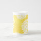 Blom- Monogrammönster för gul vit Benporslin Mugg