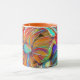 Julie Richmans är den digitala designen på denna färgrika konstnärliga abstrakt mugg den av ett snällt konstverk som kan tyckas om varje dag med en morgonkopp av tea eller kaffe. Idén för denna avbildar kom omkring på grund av fantasifantasi om cubistblommor. Muggen är colorfully gladlynt med orange-, lila- och blåttgröntfärger.