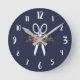 Rundaväggen tar tid på för en hårsalong. Den marinblåa väggen tar tid på presentera en para av vitsax som dekoreras med blommor. Den blom- ordningen består av blommor i rött, orange, rosa, och vit. Med vit numrerar calligraphyen.