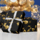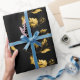 Guld- blom- toile på svart bakgrund som slår in papper.