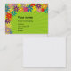 Ett färgrikt blom- tema i en visitkort. Du kan skriva in text i de existerande fälten, men de kan ändras (redigerat, tillfogat eller borttaget) genom att använda skräddarsyalternativet. Val av kortformatet och papper typ.