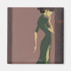Blålila ramar ge vid bild. Med en violett bakgrund står dam i ett ljusare utrymme. Dam ser dock bakåt, vilket ge avstånd mer och mystiskt. I en mörk grönt klänning är figur skuren och eleganten, som om något kraschade över hennes sinne för att hindra hennes framsteg.