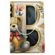 Ömtåliga blommor i mjuka nyanser flätas samman med de graciösa linjerna hos en klassisk bokstav, medan en plysch nalle lägger till en touch av lekfullhet till detta tidlösa konstverk. Detta konstverk utstrålar en atmosfär av sofistikation och värme, vilket gör det till ett välkommet tillskott till alla inredningar.