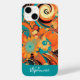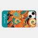 Funkyns vridning och blommigtens utformning i orange och teal. Lägg till ditt namn på grund i ett handskript.
