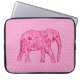 Blandad digital grafik från mönster av en rikligt sköljd elefant mot en arabesque-ledad bakgrund - skuggor av rosa från blekens rosa till djup fuchsia
