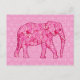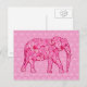 Blandad digital grafik från mönster av en rikligt sköljd elefant mot en arabesque-ledad bakgrund - skuggor av rosa från blekens rosa till djup fuchsia