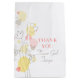 Visa din uppskattning för dina blomflickor eller andra bröllop-medhjälpare med den här tacksamhetsgåspåsen. Perfekt att fylla med en stor speciell gåva för att visa din uppskattning. Fashionable modern pastellskalad av orange koral, gult med klassiskt varmt grått. Matchar keepsaké-påsar och kort från bröllop. Anpassa/anpassa de här presentförmånspåsarna med titel, namn och ett personligt meddelande eller tack. För närvarande läser du "Tack Flower Girl Tanya". Designad av Sarah Trett.