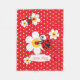 Personligens barnfilt. Söt personlig namn filt i ljusrött med ljusa ladybuggar/ladyfåglar och vita grafiska blommor. Gör en unik flickfödelsedag eller firande-gåva. Kontakta mig om du behöver hjälp med din egen personlig namn. Perfekt för resor och för varm behålla på vinterkvällar. © Original Graphics art and design unikt skapat av Sarah Trett. www.sarahtrett.com för www.mylittleeden.com