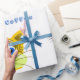 Blomklistrad Papper, före efter kaffekatt Presentpapper