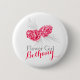 Knappstipbrickan för teckning i elegant är vit, röd och grått. Läser en blomma med din titel och namn. Underbar för gäster att veta vem som är vid möhippor, bröllop-repetitioner eller att lägga till bröllopsfavoriter. Ursprunglig konst och design av Sarah Trett för www.mylittleedenweddings.com