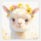 En söt och fluffy alpaca ser varma ut med starkt, uttrycksfullt ögon, strålande lycka och charm. Dess mjuka ylle belyses av en mild guldglöd, ge det ett eteateralt, drömmande utseende. En ömtålig blomma krona med pulserande gult och rosa blommar vilar på huvudet och ger en viskare beröring. Bakgrunden är en solbelyst skugga fylld med vilda blommor i gult, vitt och rosa, mjukt blandad i en målningsatmosfär. Flyter sällskapsdjur dansa runt Alaca, vilket ökar känslan av glädje och lugn på den här fantastiska scenen. Den här designen är perfekt för dem som kärlekar natur, boskap och lättskrämda, upplyftande bilder.