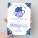 Fira en jubileumsfödelsedag på ett unikt och hjärtligt sätt med denna söta Tea Party Födelsedagskort - Shower via post-inbjudan. Denna eleganta blommiga inbjudan har en handritad tekanna dekorerad med en vacker bukett i vackra lila nyanser, som sätter tonen för en speciell fjärrfirad fest. Perfekt för när ni inte kan samlas personligen, ber denna inbjudan gästerna att skicka kort fyllda med minnen, foton, historier och hjärtliga meddelanden till födelsedagsbarnet, så att de känner sig älskade på sin stora dag. Du kan välja att samla korten och överraska firan eller låta dem skickas direkt för en vecka fylld med glädjefull post. För att maximera deltagandet kan du överväga att beställa en digital kopia för att enkelt dela inbjudan via e-post, sms eller sociala medier. Se till att inkludera ett "sk