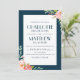Snyggt- och elegant bröllopinbjudan som presenterar målade vattenfärgro med en marinbakgrund. Du kan skräddarsy bakgrunden till en färg av ditt välja. Välj stansad formar eller texturerade papper för ett extra lyxigt handlag. Snyggt- och elegant bröllopinbjudan som presenterar målade vattenfärgro med en marinbakgrund. Du kan skräddarsy bakgrunden till en färg av ditt välja. Välj stansad formar eller texturerade papper för ett extra lyxigt handlag. Blandning- och matchinslag från denna samling för en seamless och elegant inbjudanuppsättning.