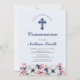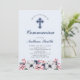 Fira din speciella dag med denna vackra första kommunion inbjudan design. Denna design har en vacker blommig ram och kors. Du kan anpassa all text och bakgrundsfärg.