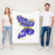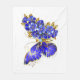 Smycken, blå, safir, gnistrande blomfjäril med vinge dekorerad med blå, dyrbara blommor med gyllene blad på vit bakgrund.
