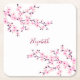 Blommande körsbärsblommor Rosa Vitt Monogram Underlägg Papper Kvadrat