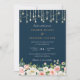 Blommande rosafärgad marin kedjeljus elegant mörkt bröllopsinbjudan