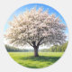 Blommande våräppelträd runt klistermärke