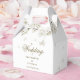 Elegant bröllopspresentbox med delikat vit blomning med din evenemangsinformation i chic guldtypografi. Du kan anpassa med ditt eget tackmeddelande på baksidan. Ett perfekt sätt att tacka dina gäster! Designad av Thisisnotme©