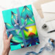 Blommar av Elegance, Mystic Lotus. Lotus blommar är symmetrisk och mycket detaljerad, och dess petaler är i harmoniska skuggor av teal, blått och grönt. Blommans ljusa gult lägger till en pulserande accent och framhäver dess centrala position. Utformningen kombinerar naturskönhet med ren dekoration och skapar en harmonisk bild av eleganten som är både modern och traditionell.