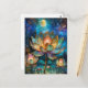Blommar av glasaktigt Lotus i månljuset Vykort