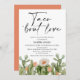 Blommar Cactus Taco "om Kärlek Inbjudningskort för möhippan Cactus temed inbjudningskort för möhippan med en underbar grönt, vit och orange kaktus och en framgångsrik arrangemang och modern kalligrafi och minimal teckenrubrik.