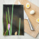 Den mjukt dramatiska bilden på detta kökshandduk är ett originalfoto av ZoeSPEAK från en blommar chives-fabrik. Varje blek lyfter blomman vid sin ljusblåaktiga tubulära grönt. Mörken, kvällens bakgrund i fotot visar hur vacker denna utsökta ört är.