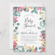 Vår vackra och elegant babyduschinbjudan med en vattenfärgad blommigt ram med mjuka nyanser av grönt, rött, lila och guld. Den fantastiska blommigten kombinerar klassiskt elegans med moderna beröringspunkter.