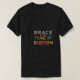 Brace Bolt Blommar. En pulserande t-shirt-design med ord "Brace, Bolt, Blommar" i ett fet, flerfärgat teckensnitt. Varje ord är ett distinkt färg som skapar ett synligt och energiskt utseende.