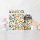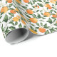 Sömlös orange skrivs ut med blommar och löv på vit bakgrund. Visa samlingen om du vill bläddra i koordinerande utskrifter och färgrutor.