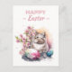Påsk-vykort med en katt med körsbärsblommar och Påskägg. Anpassade.